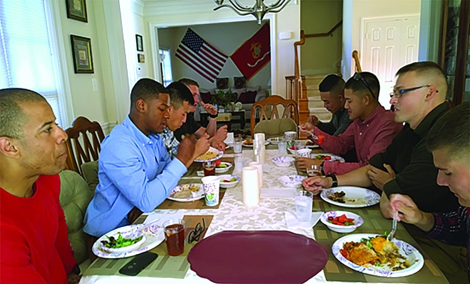 At Marine Corps Base Quantico, Navigators Michael and Velma Jacobs follow Christ’s example. Each week they have Marines in their home to share physical and spiritual food. They use these times to encourage and disciple new Marine lieutenants going through basic training school, Marines preparing for duty in U.S. embassies, officers attending Expeditionary Warfare School, or those flying the President’s helicopters. By intentional discipleship and fellowship around the table, they are laying foundations for generations of laborers throughout the Marine Corps.